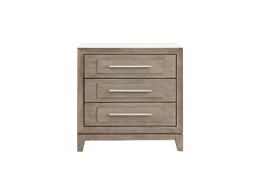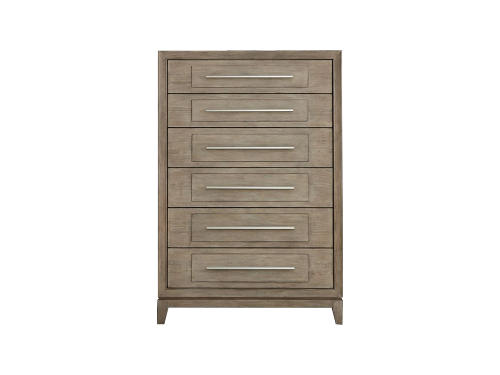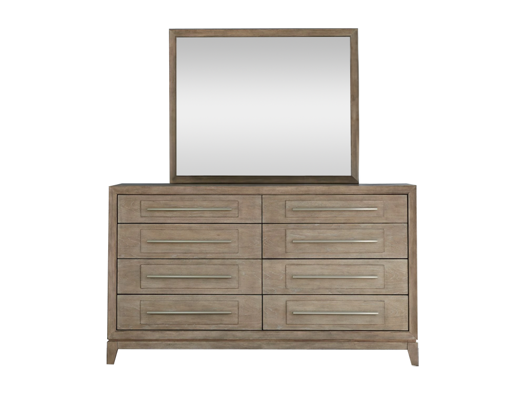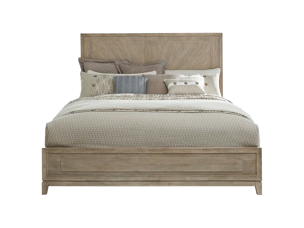 Transform your bedroom into a haven of sophistication with the Brentwood queen panel bed, dresser, mirror, and chest. Crafted with meticulous attention to detail using Rubberwood solids and Split Heart White Oak veneers, this set features a Sandstone finish. The focal point of this set lies in its picture frame molding with soft shaping, providing a touch of graceful curves that adds a subtle sense of refinement to any bedroom decor. The panel of the headboard is adorned with an overlay featuring a captivating sunburst veneer pattern, reminiscent of a radiant sunrise that brings warmth and tranquility to your sleeping space. To accentuate the beauty of the panel, it is adorned with bead molding that frames the edges, creating a harmonious balance of texture and form. The meticulous craftsmanship is evident in every inch of this bed, making it a true statement piece that elevates the ambiance of your bedroom. Accentuating this artful design is a center overlay panel on the footboard, adding a layer of dimension and refinement to the overall composition. Another element of this set is the floating base, a design element that imparts a sense of lightness and modernity. The bases flow seamlessly into a saber foot, adding a touch of classic flair to the contemporary aesthetic. The drawers of the case pieces, each a testament to precision, feature a center overlay panel that adds dimension. Experience the luxury of modern convenience with soft closing drawer guides, ensuring a smooth and silent operation every time. The top drawers are lined with premium felt, providing a lavish space for your delicate belongings, while the bottom drawers feature cedar lining. Attach the mirror to the dresser using the included bolt-on supports. The one inch beveled edge further enhances the mirror's charm, providing a subtle yet impactful detail that sets it apart. The Brentwood landscape mirror is more than a reflective surface. It's a work of art that transforms your space into a haven of style. Indulge in the perfect fusion of form and function with the Brentwood queen panel bed, dresser, mirror, and chest, where every detail tells a story of meticulous craftsmanship and thoughtful design, and speaks volumes about your discerning taste and appreciation for the finer things in life.