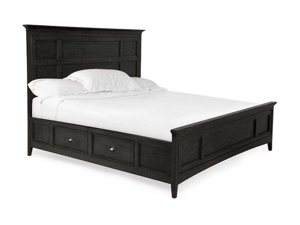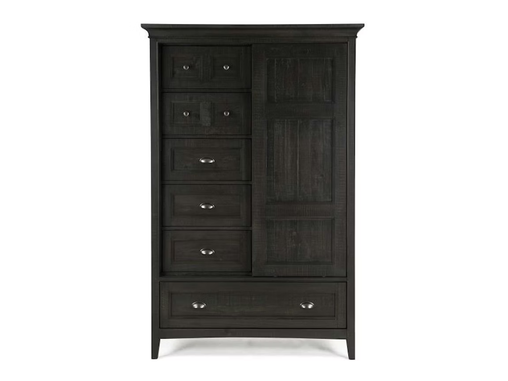 Westley Falls creates the perfect retreat whether lakeside, seaside, in the suburbs or in an industrial city dwelling. The trendy Graphite finish on Pine veneers and solids, accented by aged pewter hardware displays the beaded, framed panel drawers over straight shaker inspired legs handsomely. The rectangular panel bed offers a welcome respite as well a storage rails option while the cases provide additional generous space management.