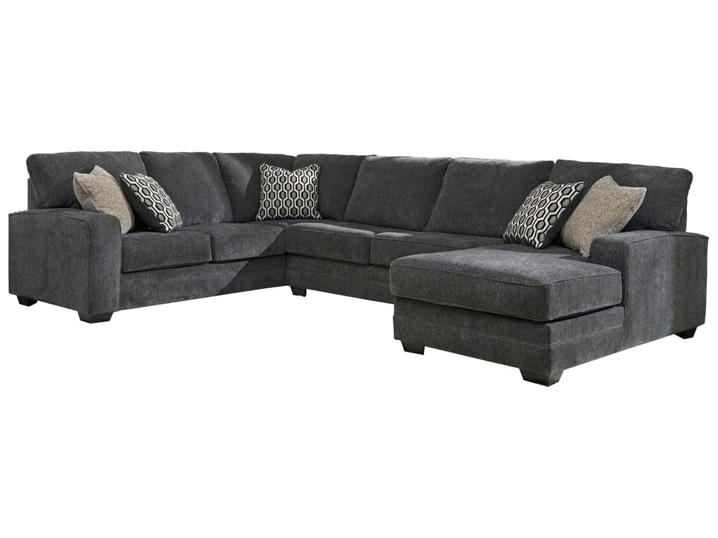Talk about easy street. This effortlessly chic sectional puts you at the intersection of cool and comfortable. Ultra-deep seats are custom made for afternoon naps and movie night marathons. So plush to the touch, the sectional's slate gray upholstery is beautifully on trend.