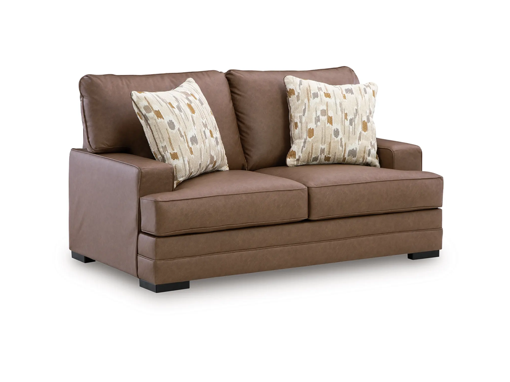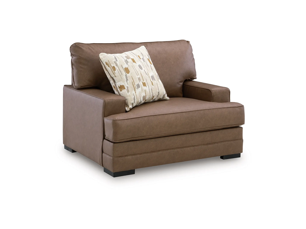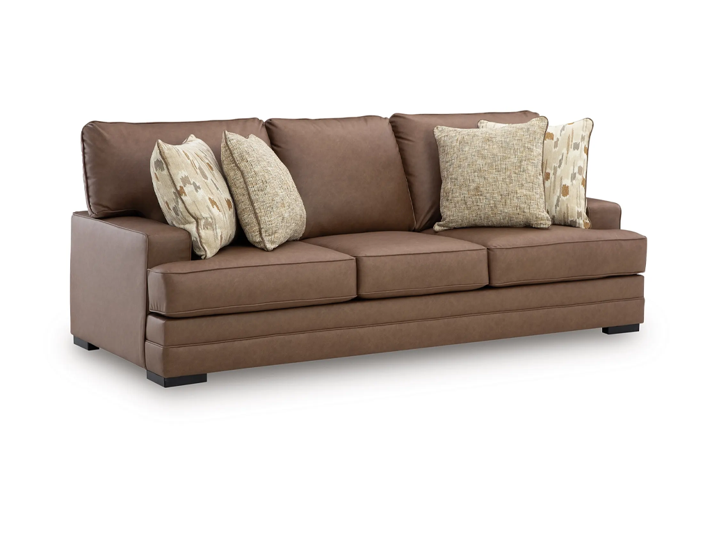 Simple and streamlined, this couch delivers a cozy yet contemporary vibe you'll love as much as we do. Its extra-roomy size and supple caramel faux leather invite you-and your besties-to have a seat. This piece's understated elegance and enduring comfort are perfect for entertaining or a relaxing night.