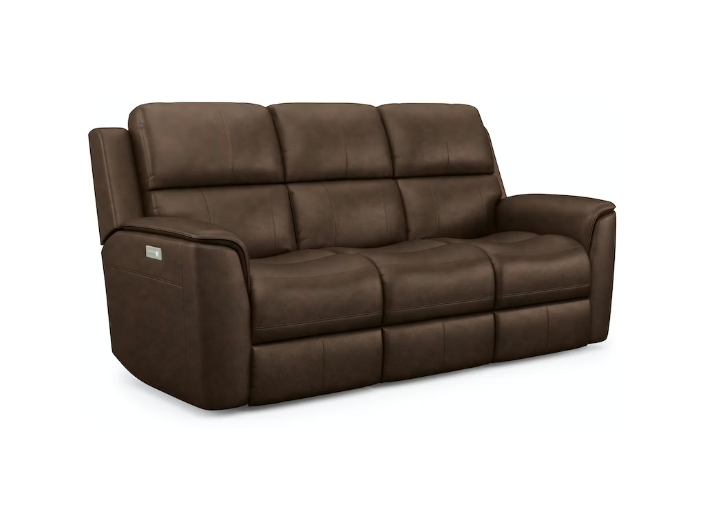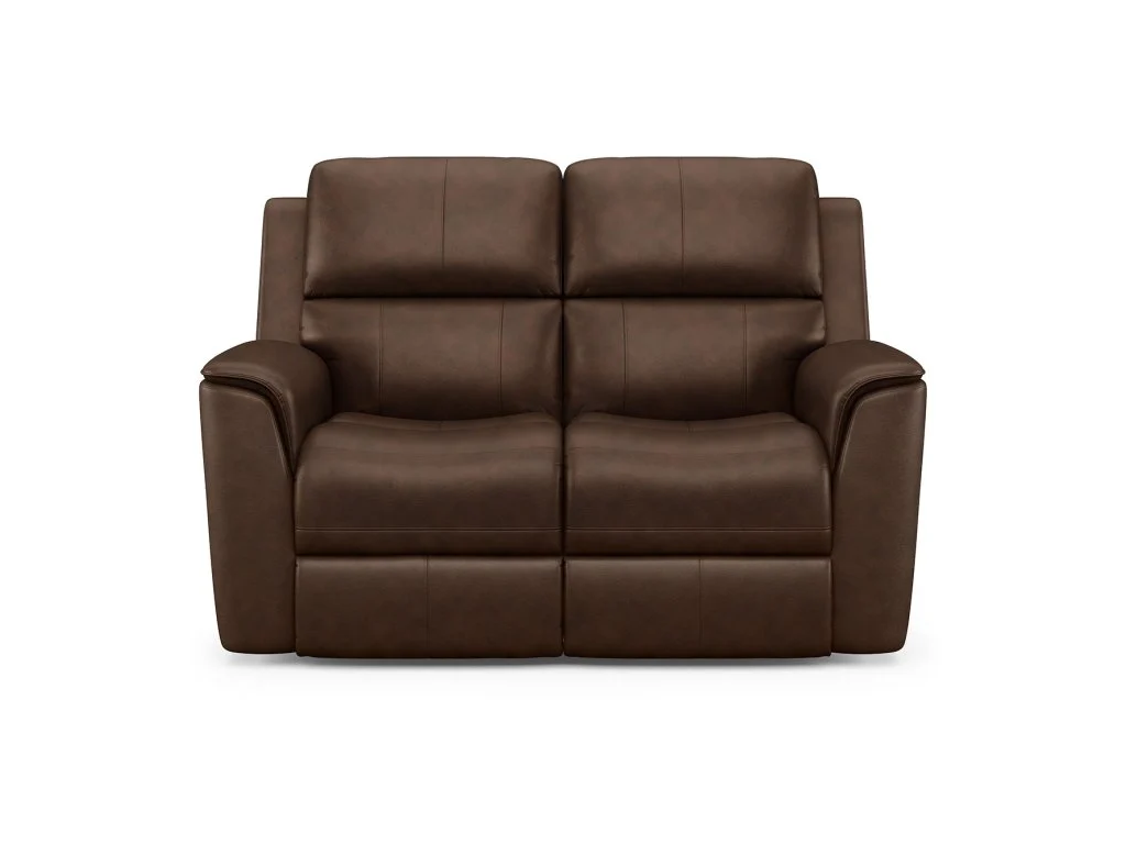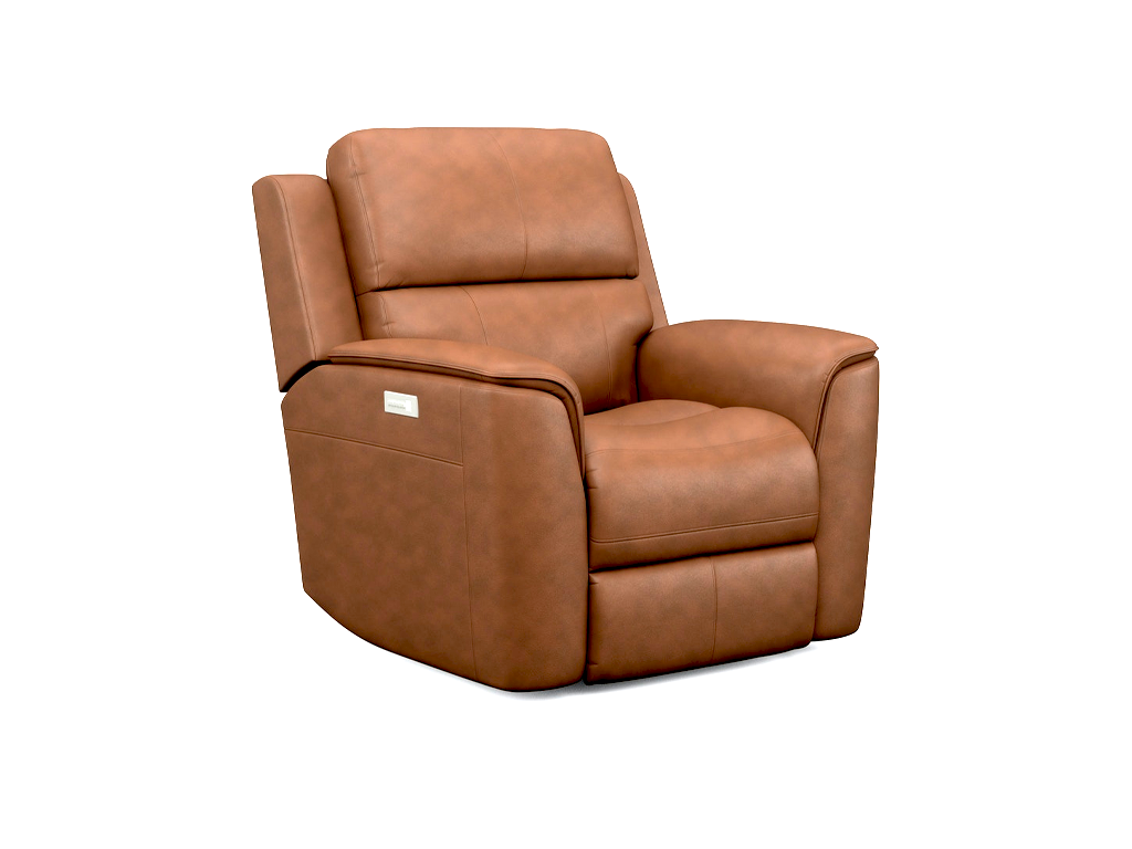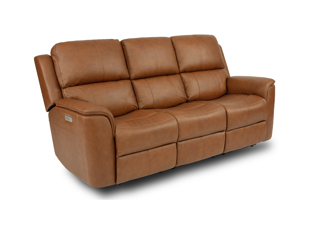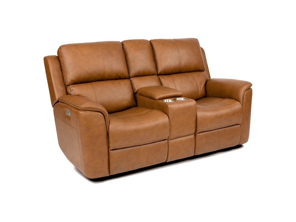 Treat yourself to a comfortable yet refined sitting experience with the Henry leather power reclining set with power headrests and lumbar. This generously scaled frame is upholstered in a caramel brown leather, and features contoured seats and padded arms with a unique sculptural shape and welt trim. Power recline, headrest and lumbar control on each end seat allows for customized comfort, and included USB ports provide convenient device charging. The Zero Gravity recline technology gives the feeling of weightlessness while Flexsteel’s patented Blue Steel Spring™ provides lasting seat support. Available in two colors: Russet & Hickory
