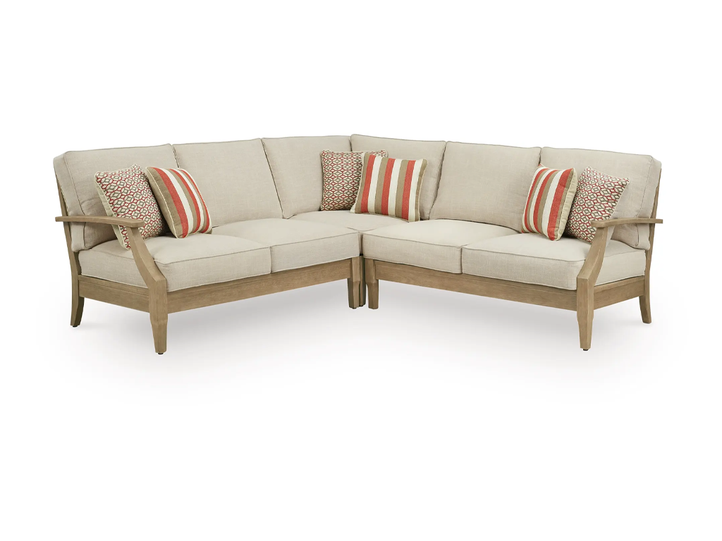 An effortlessly elegant choice in outdoor furniture, this sectional marries sturdiness and style in such a delightful way. Its eucalyptus wood frame, with tapered touches and slat styling, is treated to a 5-step finishing process for that much more weather protection. Sumptuously soft yet remarkably durable, the included cushions are wrapped in high-performing, low-maintenance Nuvella® fabric that you're sure to love.