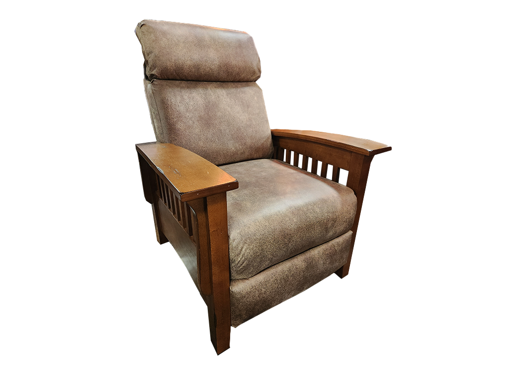 The Tuscan recliner is rustic and relaxing. This mission style recliner offers the solid, handcrafted look of the mission design philosophy. The Distressed Pecan finish gives the wood paneling a warm feel that will accent the fabric of your choice for the supportive cushions. Not only does this offer the style appeal of mission style furniture, but has the outstanding comfort that a recliner offers.