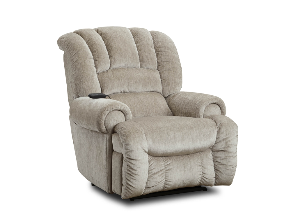 The 232 "Hondo" is part of the King Comfort collection of big man's chairs, now with a power reclining mechanism.  Boasting up to 500 lbs. capacity and a 79" extended layout, this heavy-duty chair features a 7-gauge power reclining mechanism, a 2.55 high-resiliency foam seat cushion, a steel coil spring seat box, and a reinforced steel arm structure.  Simply put, it's the strongest recliner on the market! Available in two colors: Driftwood & Dune